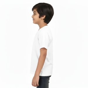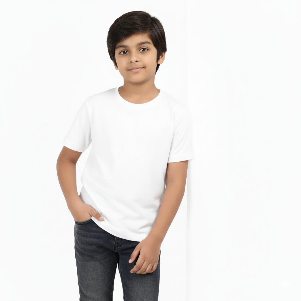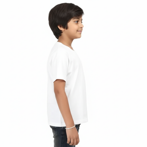 This Kids T-Shirts are crafted from 180 GSM, 100% super-combed cotton, offering a soft, breathable feel that stays gentle on the skin throughout the day. The bio-washed fabric gives a smooth, premium finish, while the pre-shrunk construction ensures the T-shirt maintains its shape and fit after every wash. A Lycra ribbed neck adds durability and stretch, and the double-stitched seams provide strength and a neat, long-lasting finish.